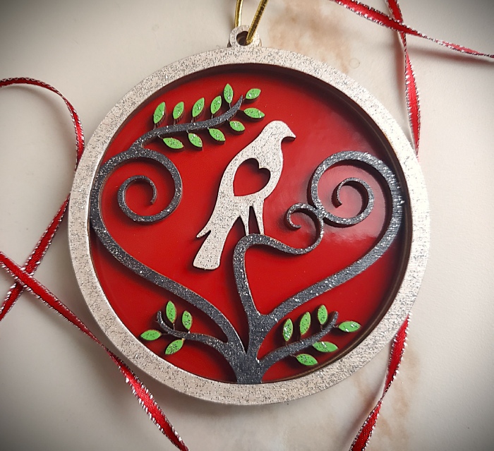 Create a memorable keepsake with this “Bird with Heart” layered decoration! Made from high-quality wood, each piece features an intricate laser cut three layer design that come ready for you to paint. Step by step instructions will allow you to customize each wooden layer with a variety of superimposed colors, textures and glitter paint on all layers for a finished dazzling effect. Get ready to paint and proudly display your custom creation! Perfect for a gift or fun home decor, this unique ornament allows your artistic side to shine! Each attendee will take home their finished 3.75” ornament complete with a colorful ribbo