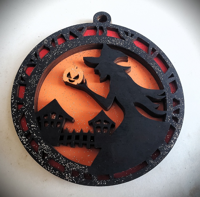Have fun designing a beautiful a keepsake with this “Witch with Jack-O-Lantern” layered decoration! Made from high-quality wood, each piece features an intricate laser cut three layer design that come ready for you to paint. Step by step instructions will allow you to customize each wooden layer with a variety of superimposed colors, textures and glitter paint on all layers for a finished dazzling effect. Get ready to paint and proudly display your custom creation! Perfect for a gift or fun home decor, this unique ornament allows your artistic side to shine! Each attendee will take home their finished 3.75” ornament complete with a colorful ribbon for hanging.